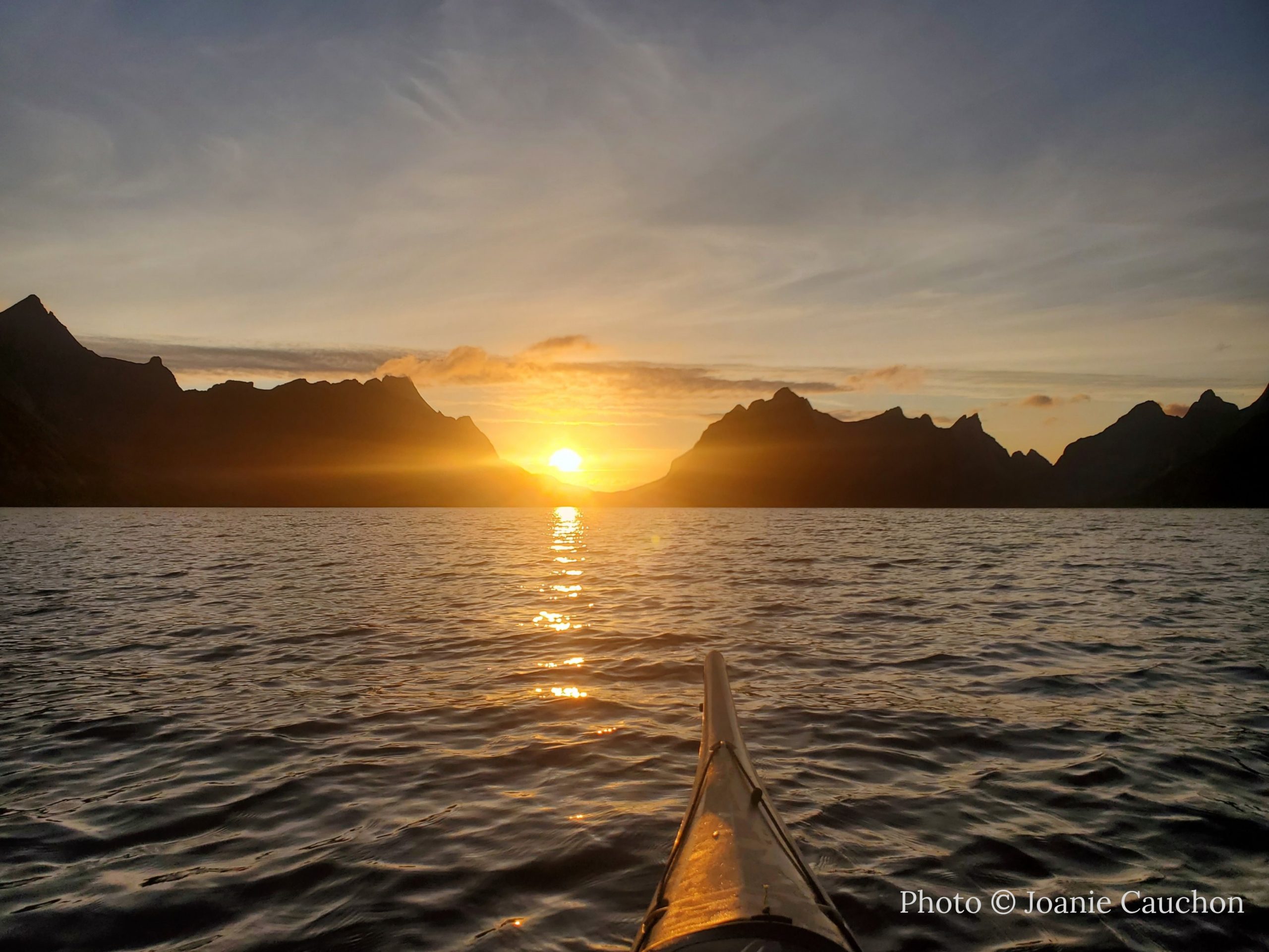 Toujours en sol norvégien, les Lofoten n’ont plus à faire leur réputation. Le fameux fjord de Reine, le plus photographié de la Norvège grâce à sa populaire randonnée au Reinebringen, vaut le coup d’être pagayé sous le soleil de minuit. Avec un peu de chance, vous aurez la visite de belles orques pendant votre balade en kayak.
