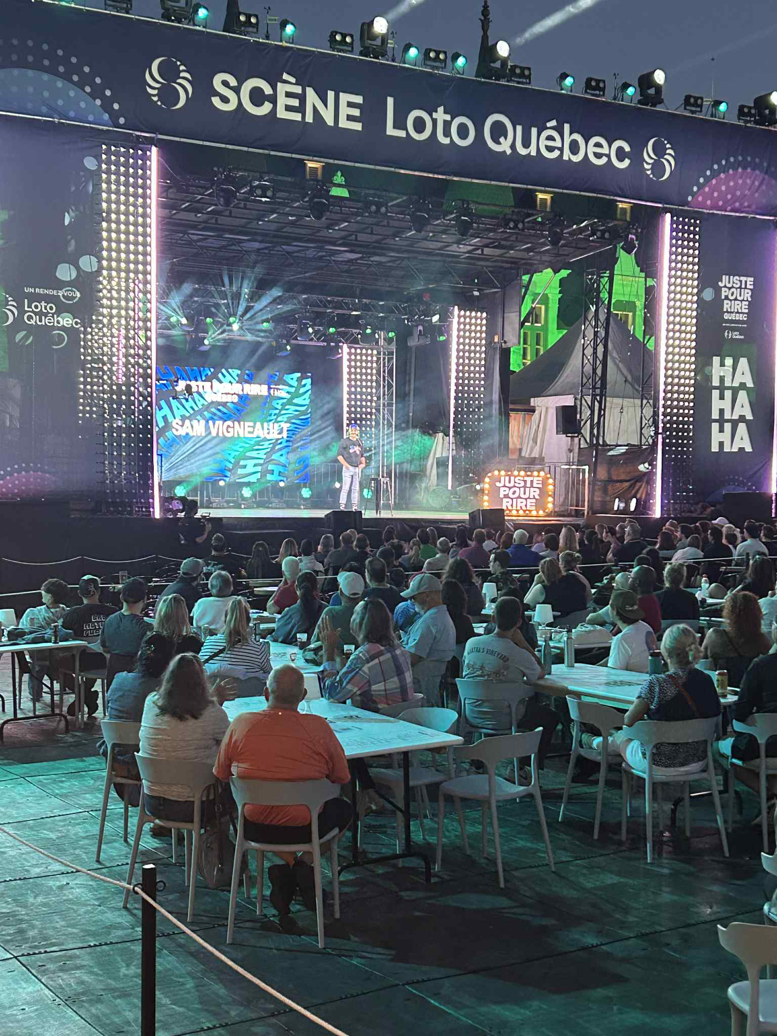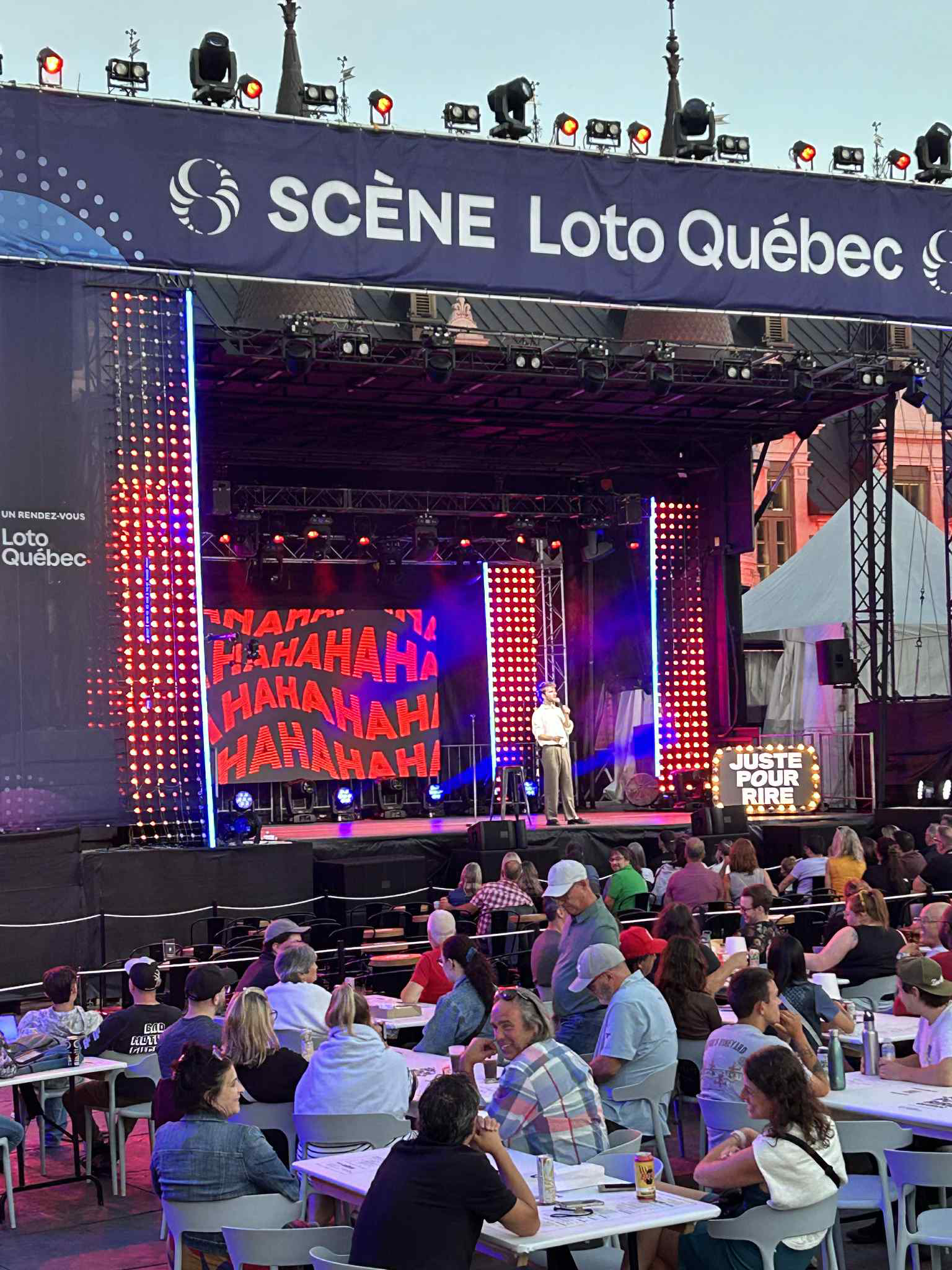 J’y suis allée avec Geneviève, une amie vieille de plus de trente ans, et son amoureux, Jérôme. Ce genre d’amitié qui traverse le temps, qui voit défiler les étapes de la vie, les grandes peines et les grands éclats de rire. Et je ne sais pas, mais, pour moi, les soirées comme celles-là goûtent toujours meilleures quand elles se partagent avec des gens qui connaissent nos histoires par cœur. Vendredi dernier, à la Place Georges-X, dans le cadre du Festival Juste Pour Rire, j’ai eu le privilège de vivre la Carte Blanche de Jérémy Demay.