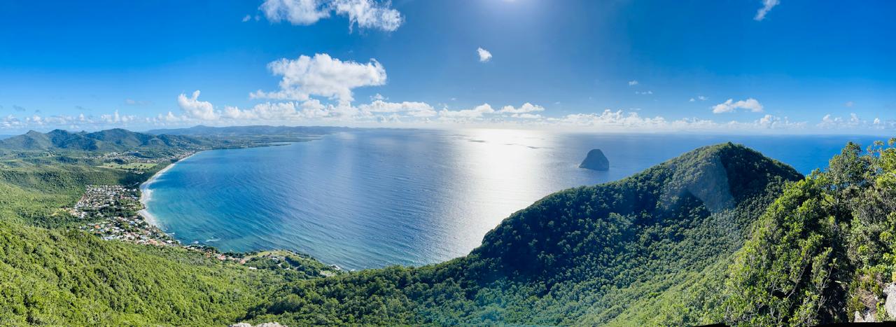Appelée « l’île aux fleurs », la Martinique a la particularité d’être entourée par deux mers aux visages très différents. À l’est, l’océan Atlantique déploie toute sa puissance : plages balayées par le vent, vagues impressionnantes et littoral sauvage qui attirent les amateurs de sensations fortes et de paysages bruts. À l’ouest, c’est la douceur de la mer des Caraïbes qui domine, avec des eaux calmes et translucides, idéales pour la baignade, le snorkeling ou simplement admirer un coucher de soleil sur la baie.