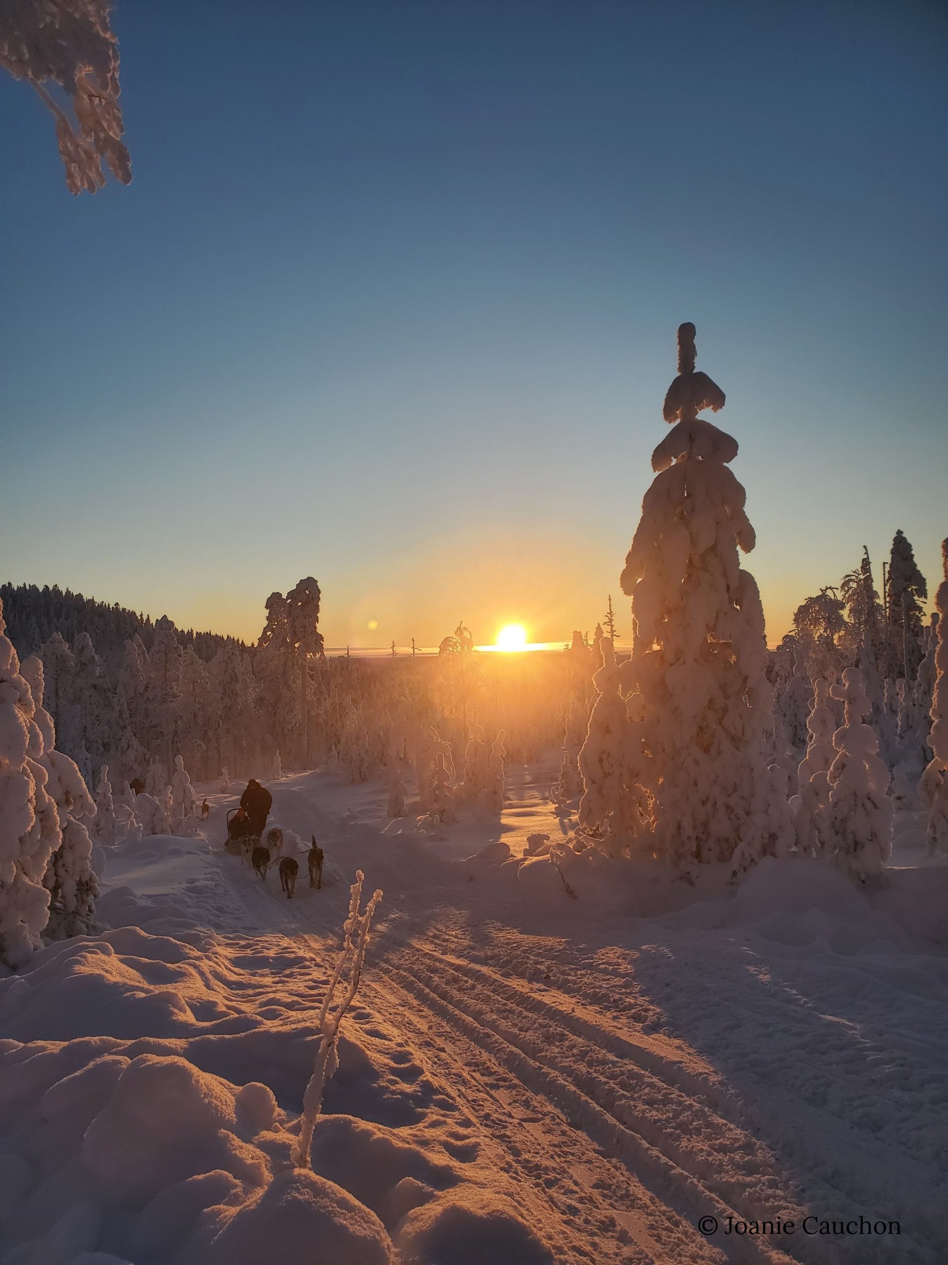 Ce n’est que ma deuxième saison hivernale en Finlande. J’y vis et travaille comme guide de traîneau à chiens au sein d’une compagnie familiale finlandaise, bien installée à la frontière du cercle polaire arctique, non loin de Rovaniemi.