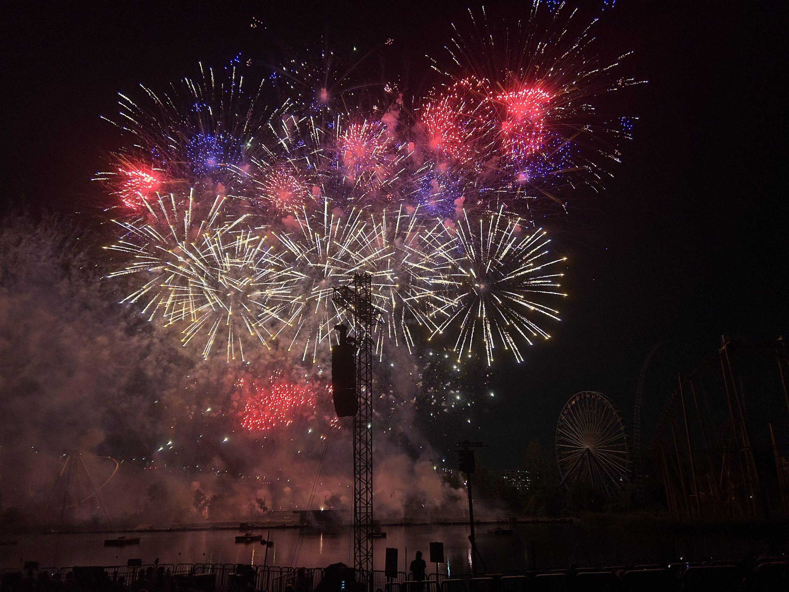Il est clair qu’une préparation méticuleuse avait été faite préalablement, car les feux explosaient au rythme de la musique. D’ailleurs, difficile de ne pas se laisser entraîner par les succès choisis par l’équipe canadienne! Accompagnés d’un jeu de cinq minutes de laser, des feux grandioses ont su attirer l’œil de centaines de spectateurs. Petits et grands se sont laissés émerveillés par les couleurs qui éclairaient le ciel de la métropole. Une pause magique qui permet de bien se remettre de ses émotions après une journée de montagnes russes.