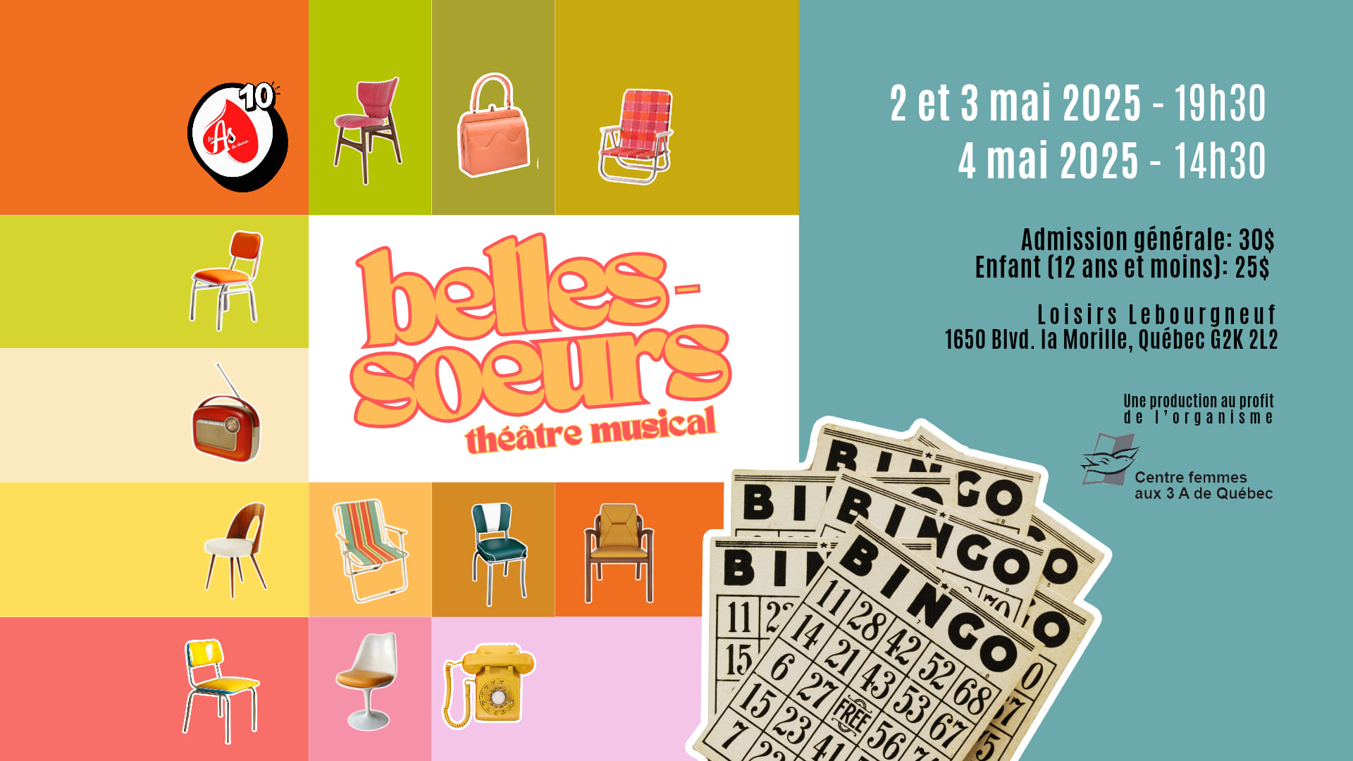 En effet, si vous souhaitez être emportés par des chansons, du théâtre et des chorégraphies à prix raisonnable, vous avez l’embarras du choix (et pourquoi choisir ?) ! Votre prochain rendez-vous sera assurément les 2-3-4 mai prochain, où la troupe Les As de Chœur produiront la comédie musicale « Les Belles-Sœurs », où une distribution complètement féminine saura assurément vous plonger dans la réalité des femmes des années 1960, plus précisément dans la cuisine de Germaine Lauzon ! Cette troupe fête d’ailleurs son 10e anniversaire, et pour cette occasion, a décidé de remettre les fonds amassés par ses productions de cette année à des organismes québécois. Pour « Les Belles-Sœurs », les sous seront remis au Centre Femmes aux 3A de Québec.