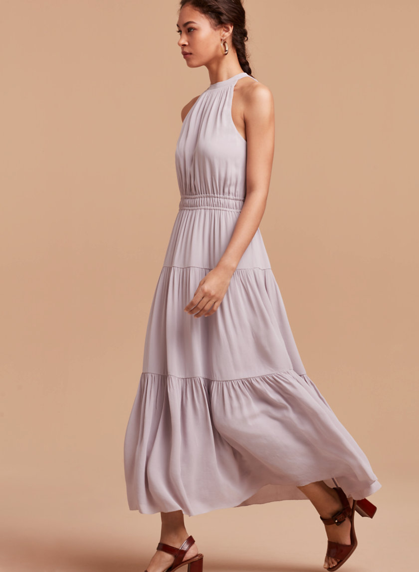 Ce modèle signé Aritzia a un look pas mal plus bohème, avec son encolure près du cou et sa jupe en étages. On aime la bande élastique de taille pour mettre en valeur la silhouette!