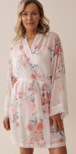 Pour les fins de semaine cocooning en mode sexy, les ensembles satinés à fleurs, les robes de chambre légères et les pyjamas vaporeux sont parfaits. Que tu sois team bleu apaisant ou rose romantique, tu vas trouver ton bonheur. C’est doux, fluide, ultra-féminin… et ça donne juste envie d’une retraite paisible au bord d’un lac ou d’un petit week-end en amoureux.