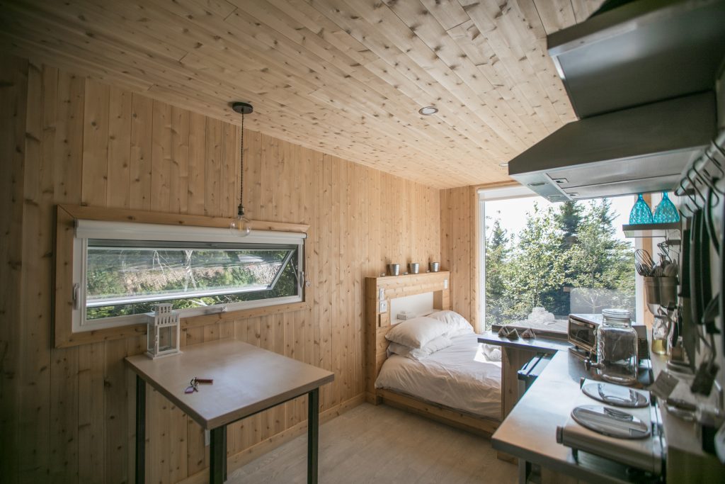 Il est vrai que lorsque les nuits deviennent plus froides, plusieurs décident de laisser tomber le camping et préfèrent louer des chalets. Je comprends. Repère Boréal devient un choix facile proposant des habitations de différentes tailles pouvant accueillir de 2 à 4 personnes. Avec mes amies, on a pu tester le MASHK une nuit et le ShipShip la seconde nuit. On a donc vécu deux expérience fort différentes, mais tout aussi intéressantes l'une que l'autre!