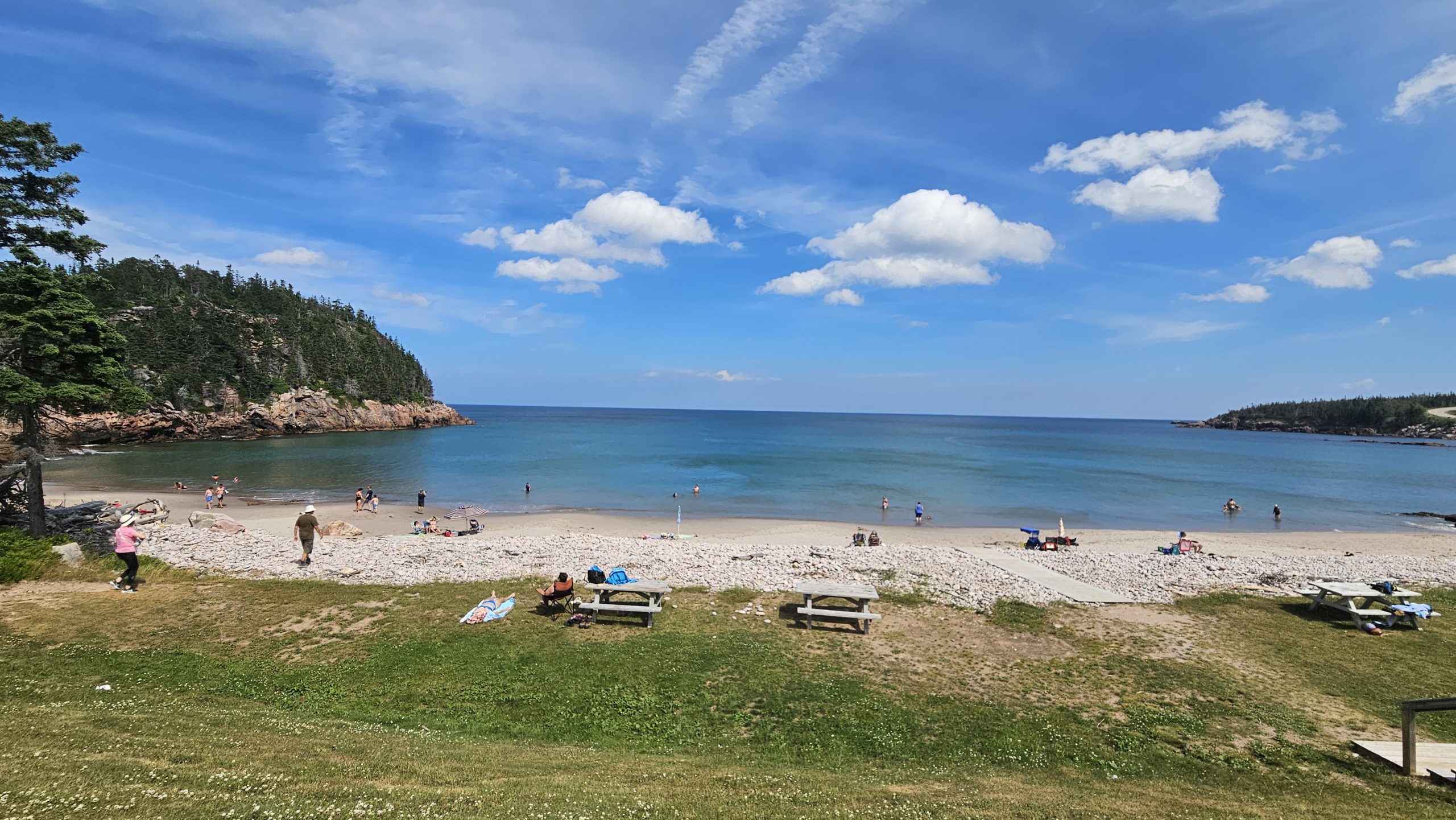 La chaleur étant aussi au rendez-vous, la plage Black Brook nous interpelle. Cette dernière a la particularité de contenir une lisière de grosses roches rondes avant d’atteindre un beau sable tout doux! L’eau limpide est vraiment bleue et mes orteils tentent une petite excursion, mais se ravisent rapidement dû à la température glaciale ( à mon goût, du moins ! ) de cette dernière.