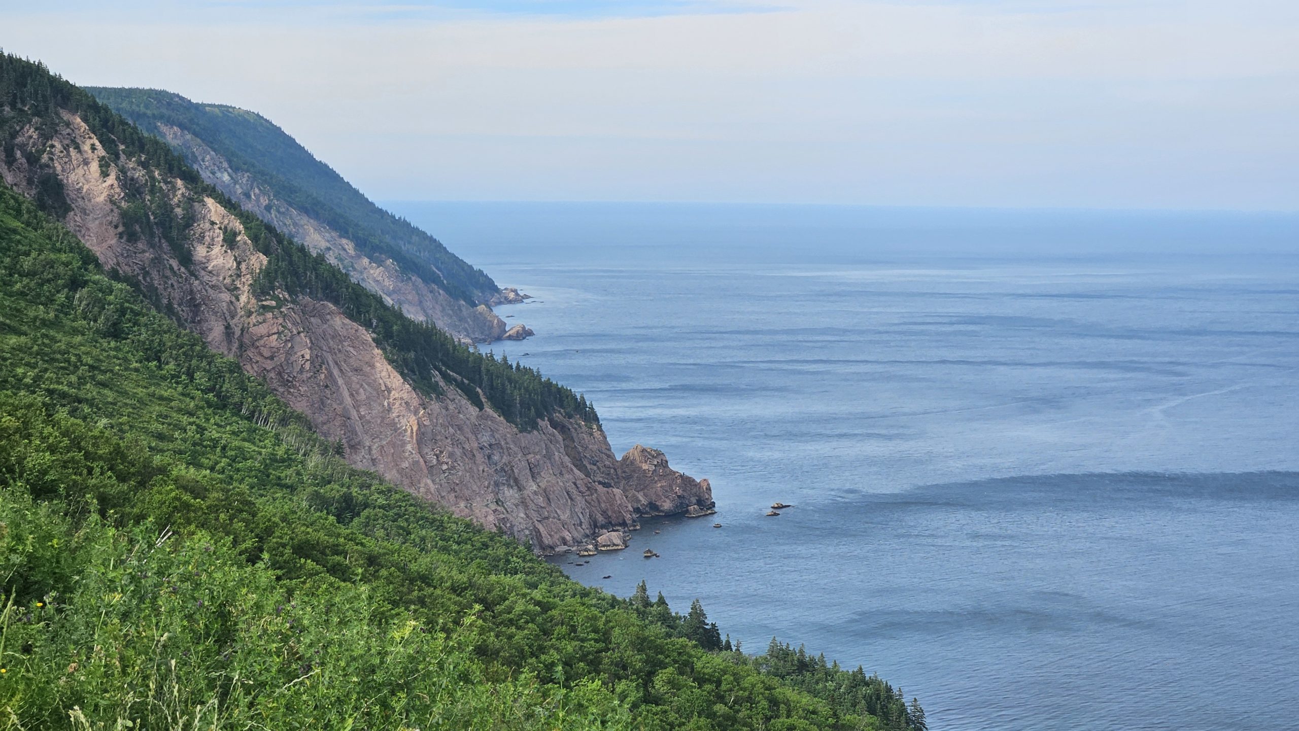 Notre après-midi se déroule en douceur, nous arrêtant régulièrement à plusieurs points de vue. La chaussée est en ce sens bien pensée, car des zones élargies ont été construites afin que les automobilistes puissent s’arrêter sans danger pour profiter des vues sublimes du Cap Breton.