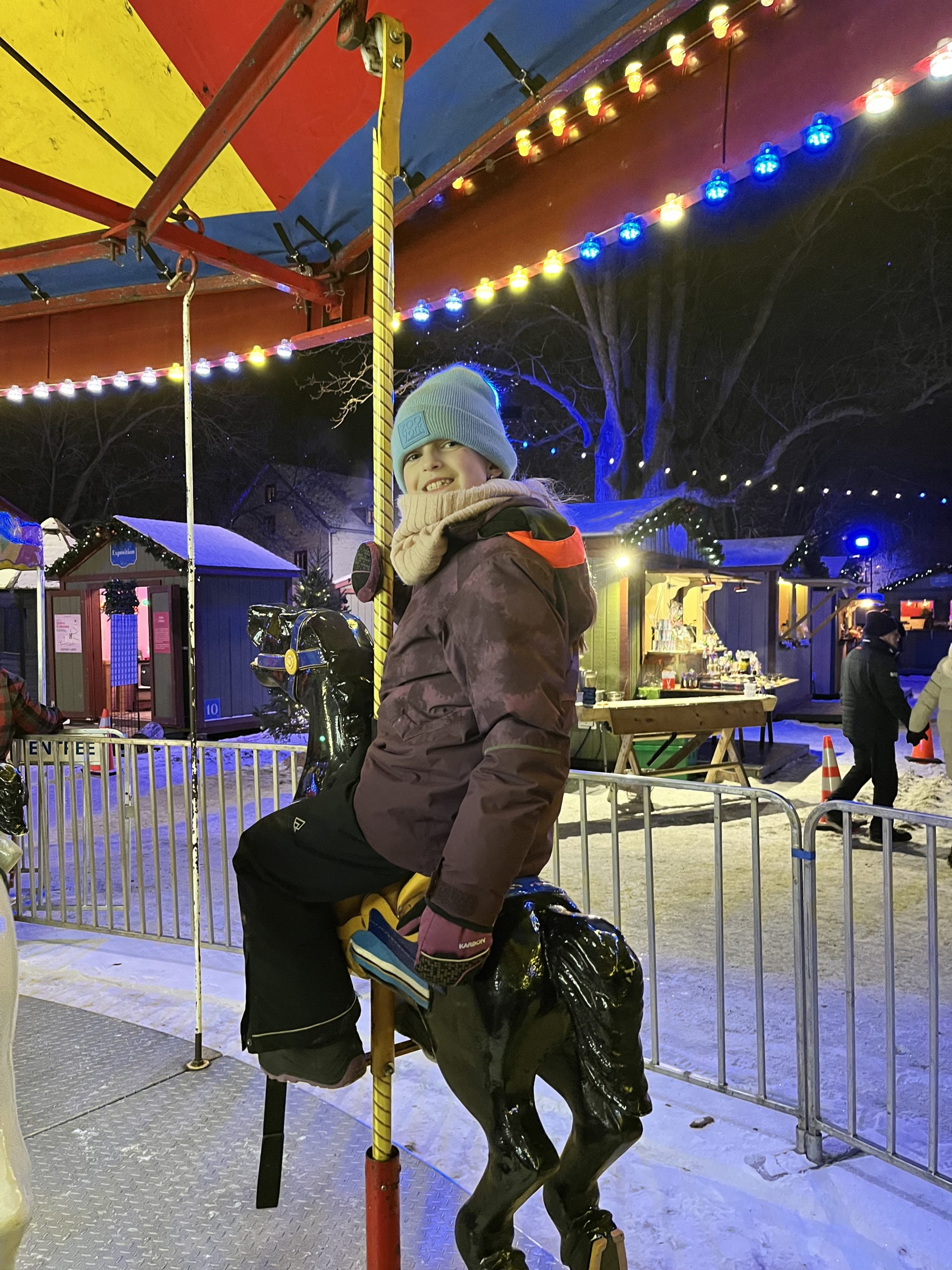 Il y a aussi des kiosques offrant des gourmandises et des breuvages chauds. Je vous suggère celui de la Confrérie, avec leur vin chaud et leur café comique (sans oublier le chocolat chaud pour les enfants!)
